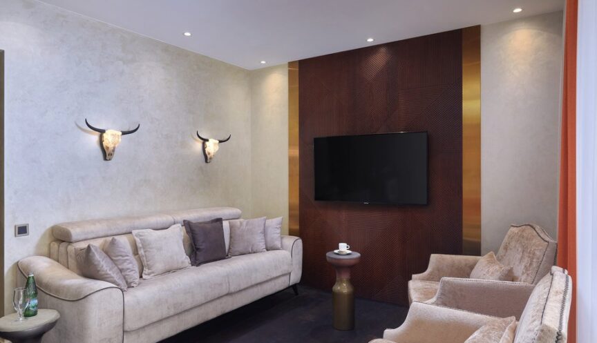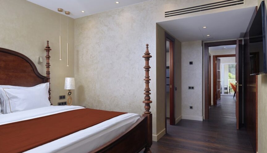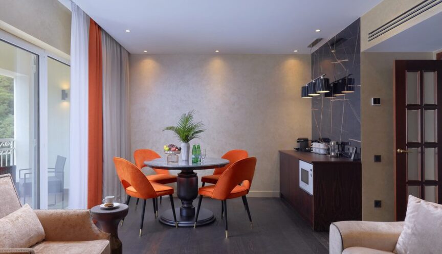 Апартаменты состоят из четырёх комнат и имеют площадь 116 квадратных метров. В номере предусмотрено два основных места и четыре дополнительных. Дополнительные места включают две односпальные кровати и большой диван.