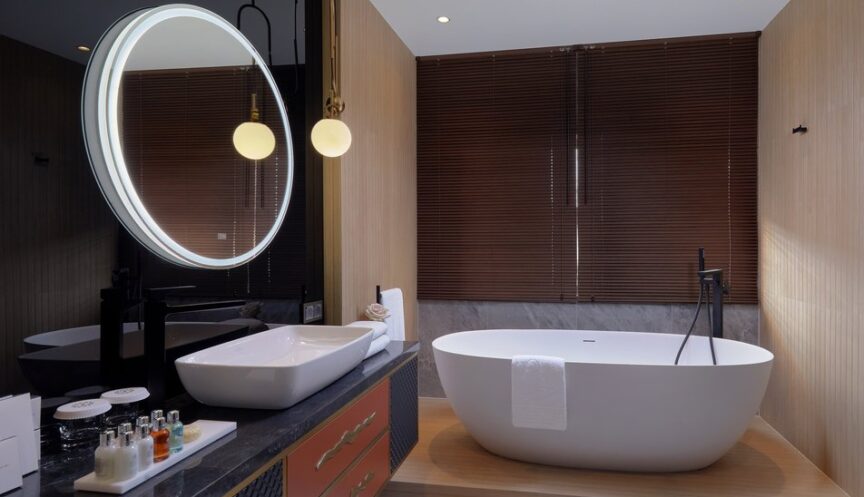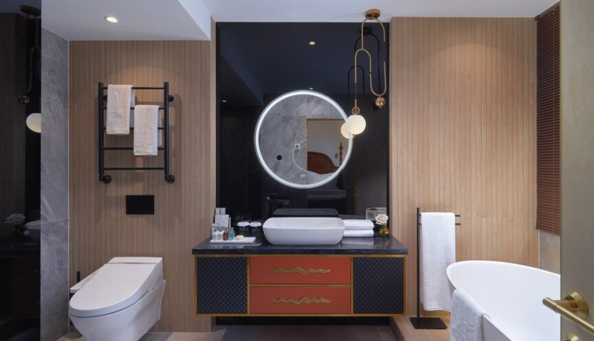 В апартаментах три санузла, в каждом из которых есть ванна или душевая кабина, туалетные принадлежности, фен и халат.